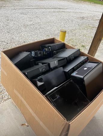 Computers, laptops, servers, computer components, cell phones/mobile devices, i-pads and tablets, i-phones. android phones, hard drives, key boards and mice, speakers, printers/ fax/copiers, scanners, office/home phone equipment, broadcasting equipment, cabling, computer cables, vending machines, electric motors, network cables, routers, switches/hubs/modems, docking stations, medical devices, household electronics, small appliances, cameras and camcorders, video game systems, video games, DVD/Blue-Ray Players, floppy drives, toasters, disk drives, microwaves, stereo equipment, power tools, surveying equipment, telecom equipment, arcade equipment, vacuum/carpet cleaners, thermal printers, MP3 Players, digital clocks, recording devices, projectors, musical equipment, cable boxes (all types), smart boards, video cards, wireless cards, blenders, irons, coffee makers